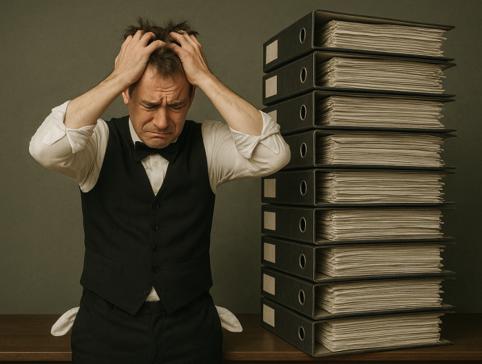 Als Bundeskanzler Friedrich Merz inthronisiert wurde, haben sich viele naive Wirte auf den versprochenen Bürokratieabbau gefreut. Kein Wunder, denn laut einer Untersuchung des DEHOGA verbringt ein deutscher Gastronom rein rechnerisch …