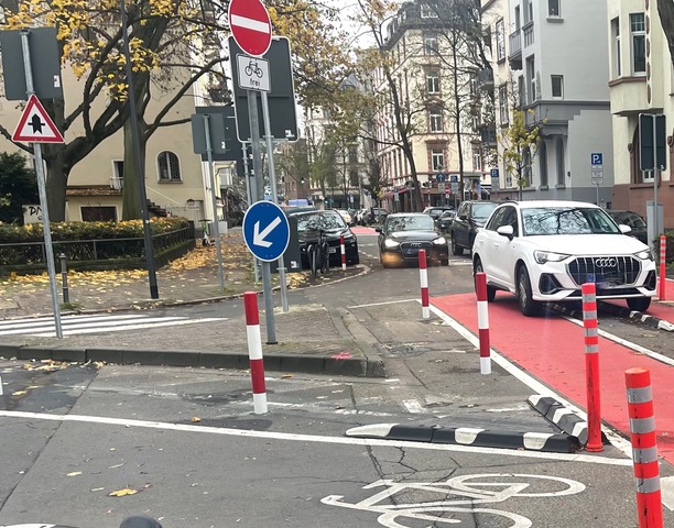 Leider manifestiert sich der Hass auch immer mehr auf den Strassen der Stadt. Autofahrer, die durch gezielte Parkraumvernichtung, absurde Diagonalsperren, verwaiste Baustellen und künstlich erzeugte Nadelöhrstaus systematisch in den Wahnsinn getrieben werden, treffen dort auf Fahrradfahrer, die von der offen autofeindlichen Verkehrspolitik der Stadt Frankfurt derart aufgehetzt sind, dass sie eine Hybris entwickeln, die sie glauben lässt, die Stadt gehöre ausschließlich ihnen. Genau deshalb kommt es immer häufiger zu extrem gefährlichen Konflikten zwischen Fahrradfahrern und Autofahrern.